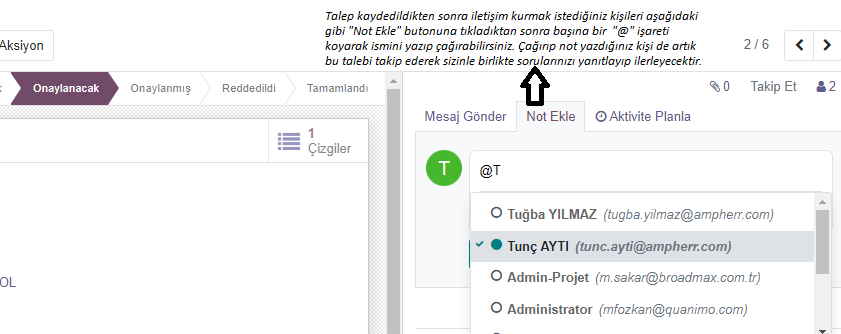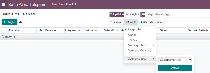 ile geçmiş veya mevcut taleplerinizi farklı başlıklara göre gruplayarak görüntüleyebilirsiniz.