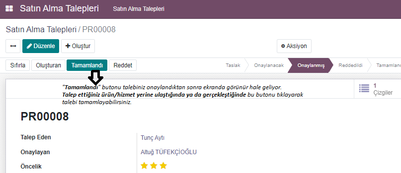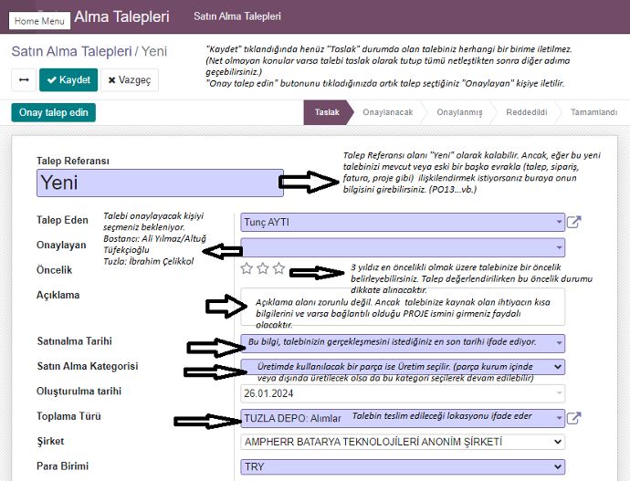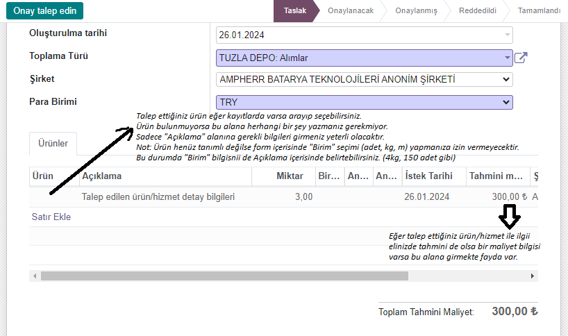 butonunu tıklayarak yeni bir talepte bulunabilirsiniz.